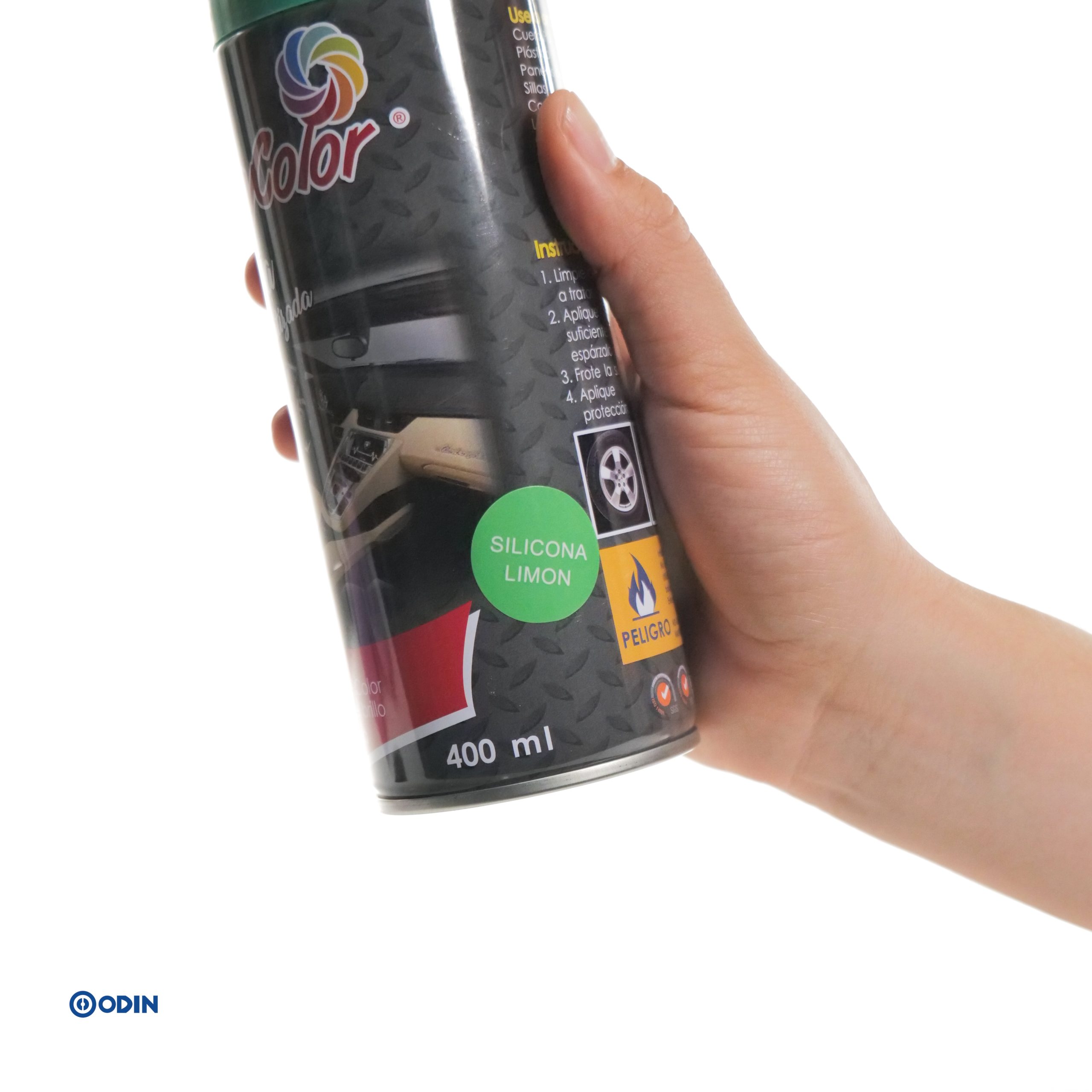 Silicona aromatizada en aerosol EasyColor de Limón de 400 ml. Ideal para proteger, restaurar el color y aumentar el brillo en superficies interiores del vehículo. Efecto antiestático y aroma agradable.