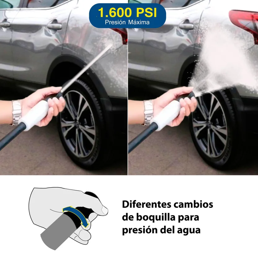 Su diseño es compacto, liviano y ergonómico, con un peso de apenas 6 kg, lo que facilita su transporte y almacenamiento en cualquier espacio del hogar. Está equipada con una manguera de alta presión de 5 metros y una pistola ergonómica que ofrece control total del chorro para adaptarse a diferentes tipos de superficie.